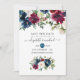 Mariage enregistrer la carte de date avec des peonies bleu marine, blanc et marron rouge et roses avec élégante typographie manuscrite.