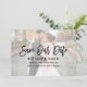 Script de Brush moderne Enregistrer notre date Faire-part Fiançailles avec superposition photo - Photo avant et photo arrière