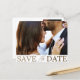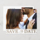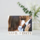 Dieses elegante Ankündigung Datum freihalten ist der ideale Ausgangspunkt für Ihre Hochzeitspläne. Mit einer Fotovorlage und einer fett "Save the Date" formatierten Typografie in luxuriösen Imitaten aus metallischem Gold auf einem sauberen, weißen Hintergrund strahlt es Eleganz und Stil aus. Personalisieren Sie es mit Ihren eigenen Daten, um eine unvergessliche Ankündigung für Ihren besonderen Tag zu erstellen.