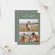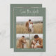 Budget Green Simple Calligraphie Script Photo Save the Date présente un trio de photos à l'avant, ainsi qu'un type moderne et minimal. Une seule grande photo sur le dos, avec votre site mariage.