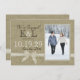 Le look de burlap avec un arc, faire-part photo parfait pour une sauvegarde de la date, fiançailles ou tout faire-part. Customisez les polices et le texte qui correspondent à votre style.