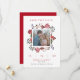 Un mariage d'hiver moderne enregistrer la date de l'annonce avec votre photo de tournage fiançailles préférée dans un cadre carré d'aquarelle en baies rouge, bleu et marron, avec feuilles verts. Personnalisez avec vos détails.