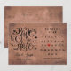 Cette carte de sauvegarde de date boho comprend un calendrier et un joli cœur rouge mettant en évidence votre date spéciale sur un fond en bois rustique. Conçue par Thisisnotme© ***POUR DÉPLACER LE CŒUR VERS VOTRE DATE SPÉCIALE, REGARDEZ À DROITE DE L'IMAGE DU PRODUIT OÙ IL EST ÉCRIT “PERSONNALISER LE MODÈLE”. SI VOUS CLIQUEZ SUR LE TEXTE BLEU “DÉTAILS”, VOUS VERREZ OÙ VOUS POUVEZ PERSONNALISER LE TEXTE. TOUT EN BAS, IL EST ÉCRIT “CLIQUEZ POUR PERSONNALISER DAVANTAGE”. CLIQUEZ DESSUS ET VOUS POURREZ DÉPLACER LE CŒUR VERS LA DATE DE VOTRE CHOIX.***