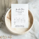 Ce calendrier d'enregistrement noir et blanc de calligraphie est parfait pour un mariage rustique. Le design présente une belle calligraphie noire sur fond blanc pour embellir votre événement.