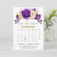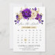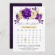 Carte de calendrier à thème or violet royal élégant épargnant la date, avec un bouquet élégant de fleurs de rose de couleur violet royal, indigo, or, jaune, de boutons et de feuilles d'eucalyptus. N'hésitez pas à me contacter pour toute aide de personnalisation ou si vous avez besoin d'un autre produit avec ce design.