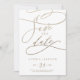 Cette calligraphie dorée romantique à l'exception de la carte de date est parfaite pour un simple mariage. Le design classique moderne comprend des tourbillons fantaisistes et des fleurs fantaisistes avec une magnifique typographie de feuille d'or en faux champagne.