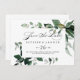 Cette calligraphie géométrique vert mariage horizontal sauver la date est parfait pour un mariage moderne. Le design est composé d'aquarelles dessinées à la main par d'élégantes branches botaniques vertes et de feuilles, ornant un cadre géométrique.