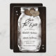 Mariage rustique enregistrez la carte de date avec un pot en maçon avec des lumières à cordes et des coeurs de burlap contre un arrière - plan en bois de grange orné de lumières scintillantes. Personnalisez facilement ce mariage rustique mignon sauvez la date en ligne. Objets correspondants disponibles pour compléter ce mariage romantique enregistrer la date.