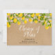 Cette carte de changement de plan pour mariée aux citrons rustiques peut être personnalisée avec vos informations de report. L'inverse contient des détails supplémentaires. Conçu par Thisisnotme©