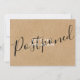 Cette élégante carte de changement de date kraft rustique peut être personnalisée avec vos informations de report. Le verso contient des détails supplémentaires. Parfait pour les mariages, les douches de mariée, les douches pour bébé, les baptêmes, les fêtes de fiançailles, les célébrations d'anniversaire, les remises de diplômes, les réunions d'anniversaire et autres événements spéciaux tout au long de l'année ! Conçu par Thisisnotme©