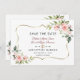 Save The Date Charm rose Fleurs blanches Mariage de cadre or