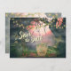 Ce faire-part de mariage Save the Date présente un charmant cimetière éffrayant. Il y a quelques vieilles pierres tombales avec un arrière - plan d'arbres tordus décorés de lumières florales enchanteresses et d'un beau ciel rose foncé.