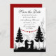 Charmante Silhouette Mountain Bear Couple Wedding Save the Date Faire-part Cartes en noir, blanc et rouge. -