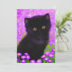 Carte avec un chat Gustav Klimt ! Ce chaton moelleux se trouve dans un champ vert de fleurs violettes. Un cadeau parfait pour les amateurs d'art amoureux des chats et autrichiens !