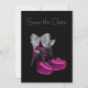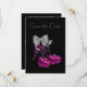 Chaussures à talon rose chaud rose chaud et noir enregistrer les cartes de date. Ajoutez vos détails à l'avant et/ou à l'arrière en ajoutant les détails de l'événement, le style de police, la taille et la couleur de la police et le libellé.