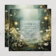 Chemin forestier éthérée de fleurs et d'arbres sont présentés dans cette magique enchantée sauge vert mariage rsvp, avec des lumières brillantes.