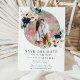 Save The Date Chic Blush Navy Blue Floral Silver Green Photo