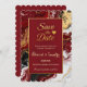 Announce your wedding date with opulent luxury and dramatic style! This stunning Save the Date card features a bold, artistic border of rich red, black, and white marble textures, accented throughout with shimmering faux gold foil veins.