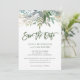 Ce mariage élégant et minimaliste sauvez les cartes datées présentent une verdure d'aquarelle tendance, avec une typographie manuscrite moderne et votre photo personnelle sur le dos.