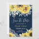 Save The Date Chic Mason Jar, dentelle, Sunflowers Navy Blue