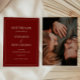 Classic Script Wine Red Wedding Photo Save the Date. Personalize with your names, wedding date, location, and a favorite engagement photo (or general couple photo) on the back.