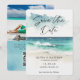 Annonce de Save the Date - Une superbe scène de plage aquarelle avec une typographie de script moderne. Avec une photo du couple heureux au dos, le code QR est également au dos de l'invitation. Save the Date fait partie d'une collection.