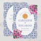 Save The Date Code QR de mariage carreau bleu de Bougainville