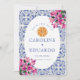 Save The Date Code QR de mariage carreau bleu de bougainvillée