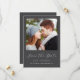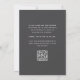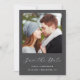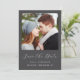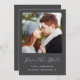 Cette simple et minimaliste carte Save the Date présente une photo carré au-dessus des mots "Save the Date" dans un élégant script d'écriture manuscrite blanche, suivie des noms du couple, la date du mariage et la ville dans la police sans serif sur un arrière - plan gris fusain. Ajoutez un message plus détaillé avec des informations supplémentaires sur l'inverse, ainsi qu'un code QR pour aider vos invités à visiter votre site mariage.