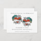 Ce mariage personnalisé enregistrer la carte date dispose de graphismes de style tatouage avec des coeurs de style rétro en rouge avec des accents de fleurs bleues qui sont prêts à être personnalisés avec le nom de la mariée et mariée. Le graphisme tatoué à la main libre a une sensation rétro.