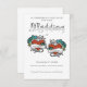 Ce mariage personnalisé enregistrer la carte de date dispose de graphiques de style tatouage et de lettrage avec des coeurs de style rétro en rouge avec des accents de fleurs bleues qui sont prêts à être personnalisés avec le nom de la mariée et mariée. Le graphisme tatoué à la main libre a une sensation rétro.