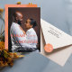 Donnez le ton à votre mariage avec des cartes sauvegardées avec vos noms et les détails de l'événement au-dessus du portrait de votre couple préféré. Un simple bloc de couleurs avec un agencement collage de formes remplit le dos, en faisant correspondre vos cartes à votre thème choisi. Customisez-le avec vos propres détails. Pour plus de personnalisation (couleur arrière - plan, style de police et couleur), cliquez sur le lien "Personnaliser" et utilisez notre outil de design pour modifier ce modèle.