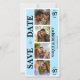 Mariage Bleu enregistrer la carte de date avec photo cabine stylisée collage photo. Personnalisez avec vos détails personnels de mariage et photos de couple.