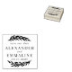 Verwenden Sie diese Save the Date Tintenpatronen-Briefmarke auf Karten, Umschlägen, Belieferungen für die Verlobten und vieles mehr. Zwei Gewölbe mit Blättern umrahmen die Vornamen des Paares und das Hochzeitsdatum in eleganten Serif-Schriftart.