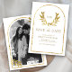 Save The Date Couronne de laurier doré Feuilles Mariage Blanc