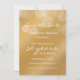 Customisez cette invitation d'anniversaire de mariage à dégradé doré moderne et élégant. Ce modèle d'invitation à la fête du 50e anniversaire de mariage est prêt à vous ajouter les noms du couple et la date de la fête du mariage anniversaire, l'emplacement et les détails du lieu, et d'autres informations au besoin. Tout le texte est modifiable. Il y a aussi un modèle de texte supplémentaire sur le côté arrière si nécessaire. Cette carte élégante aux tons dorés a un script blanc simple et élégant disant "célébrer 50 ans" qui peut être édité à n'importe quel numéro pour une autre année anniversaire. L'illusion de la parties scintillant ou des lumières féeriques est créée avec un dégradé doré arrière - plan. Il ne s'agit pas d'une véritable feuille d'or, mais d'un effet doré bronzant. Personnalisez cet anniversaire sauvegardez la carte de date pour une merveilleuse fête d'anniversaire de mariage doré.