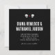 Deux crânes partagent l'expression de l'amour sur cette annonce de mariage gothique "save the date". Si vous êtes une sorcière, un sorcier, un pirate, un gothique, ou simplement une personne de la nuit et que vous n'avez pas peur du noir, cette invitation est pour vous. Des polices texturées et une mise en page simple et épurée mettent en valeur les noms du couple et le texte facile à éditer dirige les invités vers un site web pour plus d'informations sur le mariage et les événements associés.