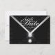 Cravate à arc Tuxedo avec diamant accentué avec garniture en soie sur un damas noir riche. Symbole noeud d'amour diamant reliant les noms de couples surlignés avec un look de soie rouge de poche de pointe.