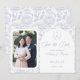 Dusty Blue Monogram Crest Wedding Save The Date : poitrine en monogramme d'art Vintage avec élégante typographie bleu pâle. Dispose d'un motif floral de chinoiserie sur l'envers pour une sophistication intemporelle. Police de script élégante pour un style formel et classique. Ajoutez votre propre photo (verticale) pour tenir dans le cadre blanc. Créez votre propre crête mariage avec les initiales de mariée et de mariée. Cette conception est faite uniquement pour cette taille. Cependant, il est disponible en version transférable si vous préférez des dimensions différentes. Vous pouvez utiliser l'outil de conception pour l'ajuster au besoin.