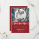 Les mariages de décembre font ressortir de magnifiques appareillages de couleurs, particulièrement à feuillage persistant et pourpres. Vous avez l'occasion d'incorporer les couleurs et les thèmes de Noël dans votre papeterie et votre tenue. Ce carte photo Save the Date affiche une image de branches à feuillage persistant sur le dessus et de branches solides sur le dessous. Il est divisé par un ruban en plaid rouge et vert.