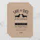 Silhouettes Dachshund avec coeur sur arrière - plan kraft style. Un plaisir enregistrer la date de l'annonce pour les amoureux de les chiens plus écologiques. Personnalisez ce faire-part de mariage original avec le nom du couple heureux et la date du mariage. Visitez le Doodle World de Jenn pour encore plus de produits de planification mariages avec ce design de chiens weenie et plus d'invitations de mariage de chiens.