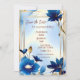 Cette carte mariage présente un style luxueux d'inspiration art déco avec d'élégantes lignes dorées encadrant un arrière - plan bleu dégradé doux. La bordure est ornée de fleurs bleues complexes et stylisées et de feuilles dorés délicats, donnant à la carte un aspect sophistiqué et raffiné. La combinaison de teintes bleues profondes et d'accents dorés crée une esthétique harmonieuse et visuellement frappante, parfaite pour une invitation de mariage formelle et élégante. Personnalisez le texte concernant les noms et les détails du mariage. Vous pouvez télécharger la carte sur votre appareil mobile ou votre ordinateur. J'ai conçu la carte avec l'aide de la technologie Ai.