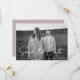 Enregistrez simplement la carte de date avec votre photo horizontale de fiançailles avec "Enregistrer la date" dans une superposition manuscrite blanche. Personnalisez le moderne enregistrer la carte de date en ajoutant vos noms, date mariage et emplacement du mariage. La photo enregistrer la date inverse pour afficher votre site Web mariage et d'autres détails en lettres blanches avec un arrière - plan pourpre poussiéreux.