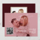 Elegant Card Design featuring one or two of your beautiful photos, QR code so your guests can RSVP and find all details online, modern calligraphy on deep burgundy background. Use Personalize tool to add your info and replace photos with your ones. Matching items could be found in my Deep Burgundy Gold Collection.