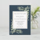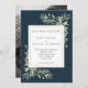 Doté de feuilles délicats d'aquarelle sur un arrière - plan bleu marine profond avec votre photo choisie au verso. Cette carte Chic Changer la date peut être personnalisée avec vos détails mariages mis à jour. Conçu par Thisisnotme©