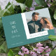 Ce design simple et moderne comprend vos informations personnalisées Save The Date et votre photo préférée sur un arrière - plan turquoise avec un accent blanc. Personnalisé en éditant le texte dans les zones de texte fournies #savethedate #mariage #weddingstationery #personalized #personalizedstationery #weddinginspo #custommarrio