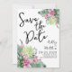 Un design tropical qui embrasse la beauté tranquille de la nature mélangée à une touche ludique qui vous aidera à vous amuser. Un mélange de feuilles tropicales vertes apaisantes, y compris des feuilles de bananier, des palmiers, des feuilles de monstera et des plantes princesse rose, ainsi que des fleurs d'orchidée violet-rose apaisantes et des fleurs de protea, entrelacées avec divers autres feuillages. Ajoutant un élément de fun, un fond 'pointillé désordonné' ou 'pointillé dalmatien' noir à l'arrière infuse le design d'une touche ludique (vous pouvez le supprimer si vous le souhaitez). Amélioré par une police manuscrite moderne, cette impression enchanteresse irradie de charme et de sophistication. Ce design polyvalent apporte une sensation de paradis tropical à n'importe quel cadre ou occasion spéciale, ce qui le rend parfait pour un mariage de destination, ou simplement lorsque vous voulez ajouter une touche tropicale. Faire-part de mariage floral tropical aquarelle rose vert palmier