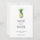 Annoncez votre fiançailles avec cet ananas aquarelle enregistrer la carte de date. Il présente un mélange de typographie classique et de script sur un arrière - plan blanc immaculé. La carte revient à une couleur verte sauge offerte. Les couleurs peuvent être customisées pour correspondre à votre jeu de couleurs mariage. Utilisez les champs modèle pour personnaliser avec votre nom et votre date de mariage. Choisissez parmi une variété de stocks de cartes de qualité. Mon préféré pour ça est le blanc. Un design tropical mais élégant pour les mariages de destination et les annonces fiançailles. Pour voir la suite de papeterie mariage correspondante, visitez le www.zazzle.com/dotellabelle Aquarelle art et design de Victoria Grigaliunas