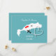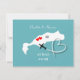 Un save the date amusant pour les couples qui se marient à Kos, avec une silhouette blanche de la carte de Kos sur fond sarcelle avec de doux cœurs d'amour rouges et très facile à personnaliser avec vos noms et message personnels