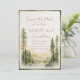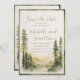 Mariage chrétien Enregistrer la carte Date avec une citation inspirante Écriture représente un beau cadre naturel simple aquarelle design incluant des pins et des montagnes dans les tons de terre de sauge, vert foncé et bronze. Il présente la Bible Verse introduction, "Et les deux deviendront un."